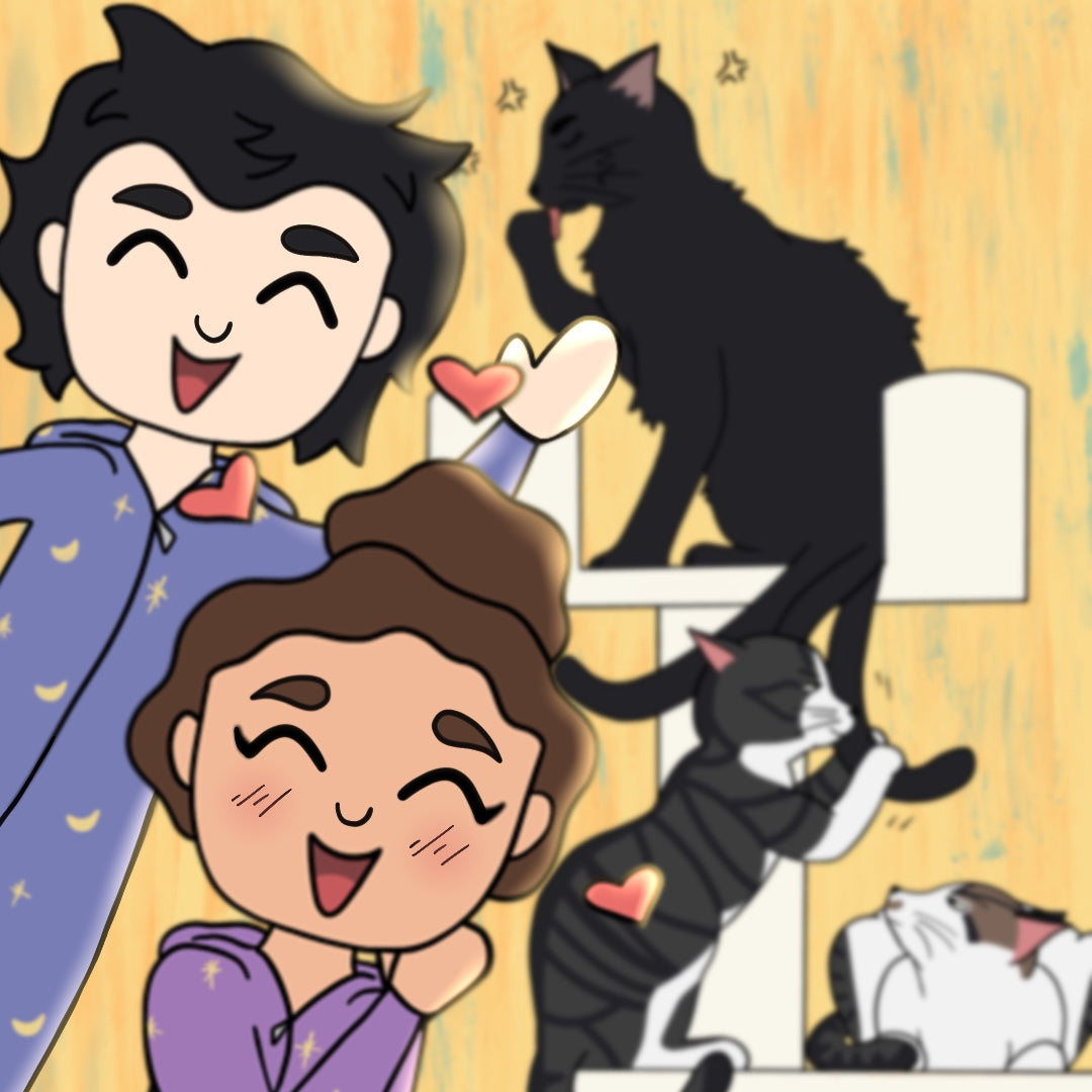 Check back later for fun freebies like art market checklists, coloring pages, and more! But for now, here's my free webtoon comic "Miscellaneous Mentality" - based on life with our three cute and crazy cats.